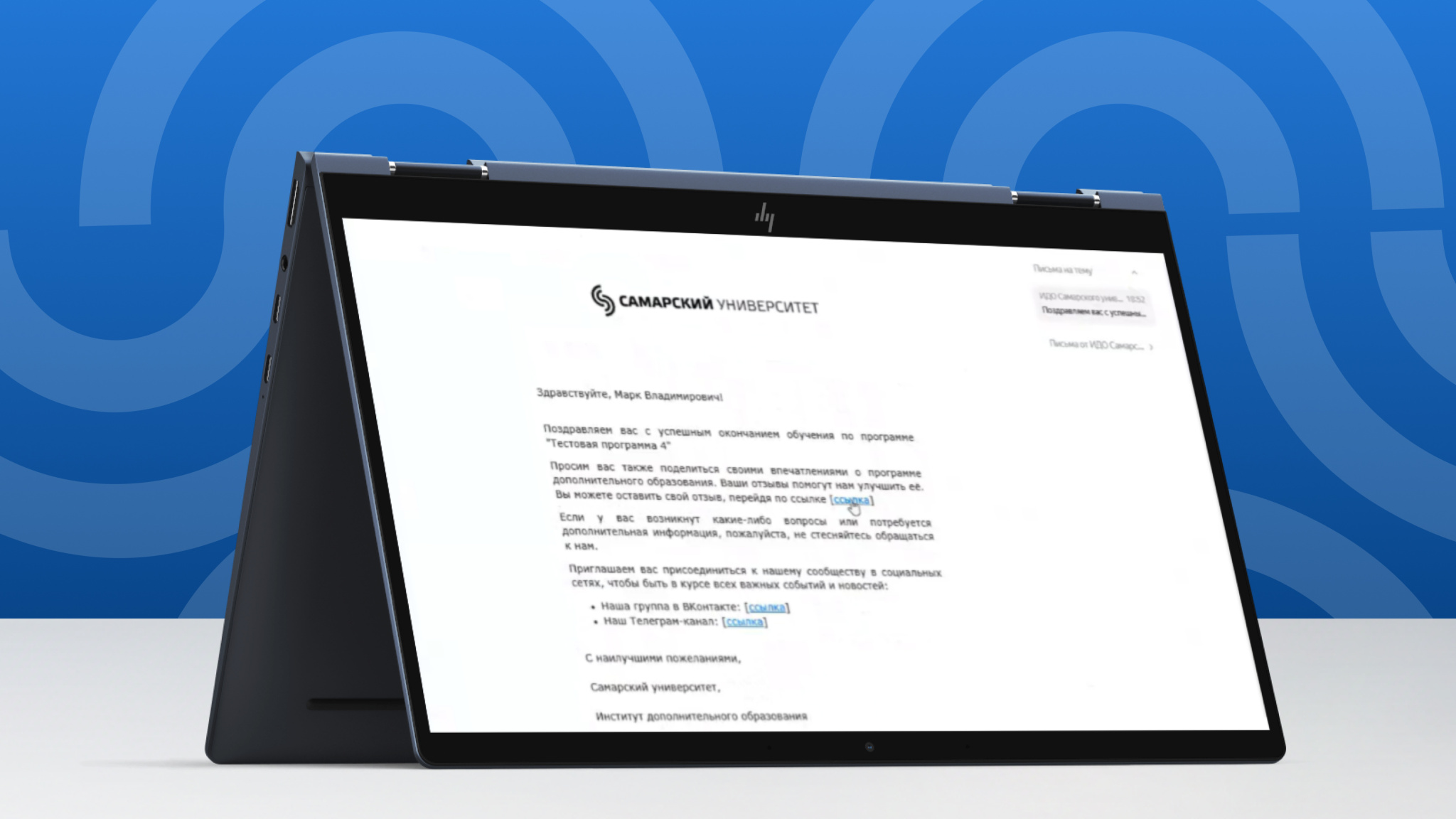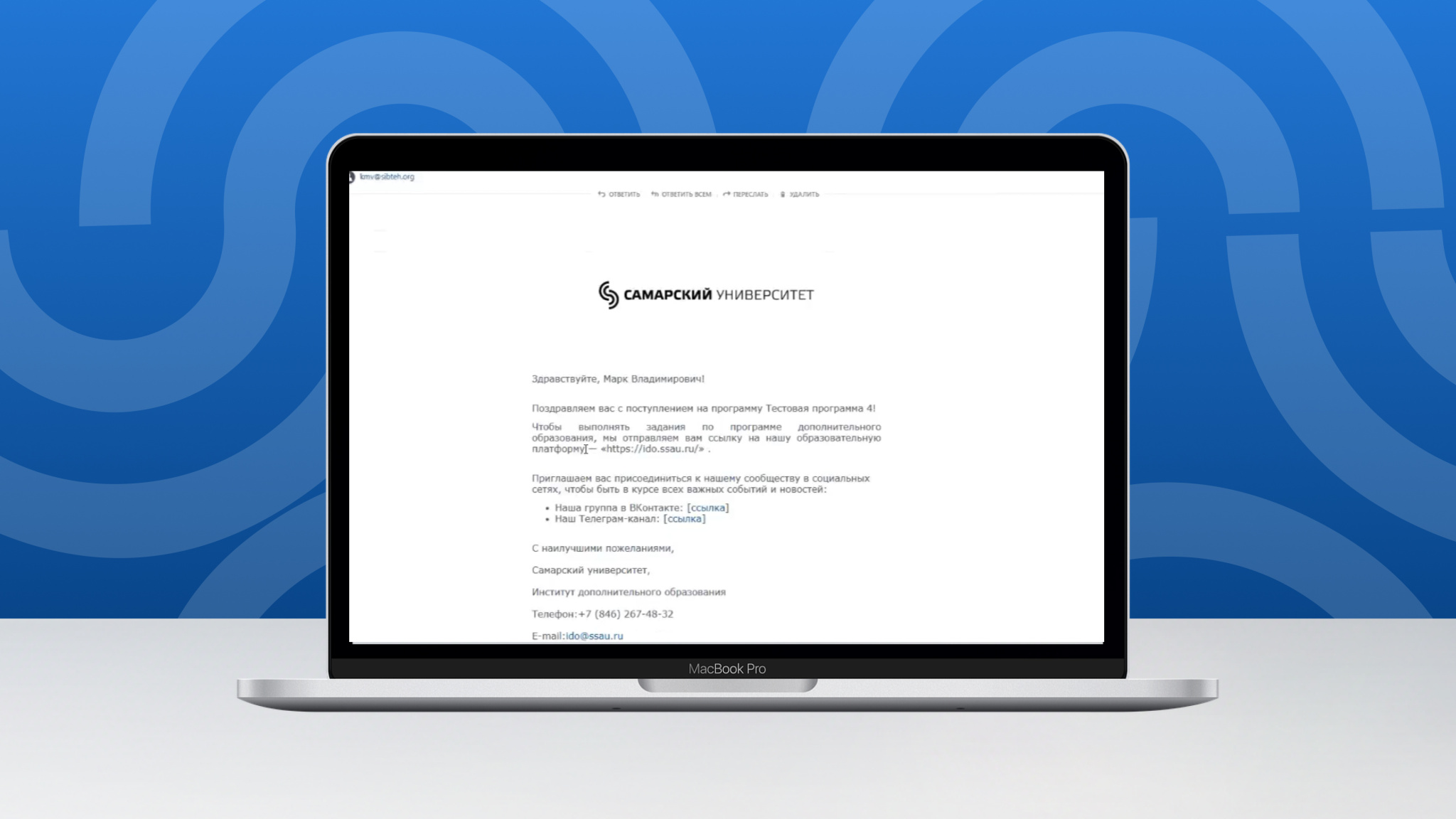 Письма слушателям приходят красиво оформленными по шаблону университета.