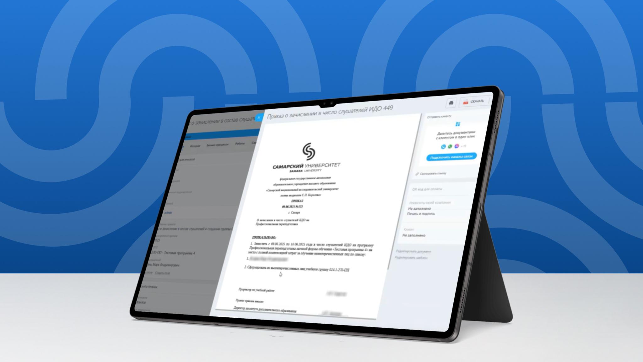 Система поддерживает согласование договоров между отделами университета прямо в CRM-системе, что значительно упрощает работу и сокращает длительность данного процесса